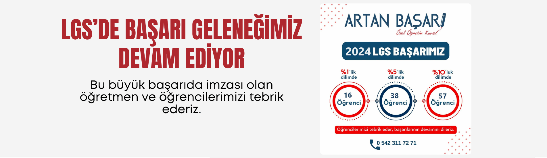 Artan Başarı’da başarı geleneği devam ediyor. 2024 LGS’deki 2 Türkiye birincisinin ardından 2025 LGS’de de 2 Türkiye birincisi. 🏆 2025 LGS’de tüm soruları doğru cevaplayarak 500 tam puan alan öğrencilerimiz Dila Sallabaş ve Emre Çınar Koçaktuz’u tebrik ederiz. 🥇🥇🥇